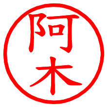 [朱肉の色]を選び、入力窓に“阿木”と入力して[生成]ボタンを押すと、印影が更新され、リンクから電子印鑑(デジタル印影)がダウンロードできます。 電子印鑑「阿木」の作り方文字表示が変なときや、文字バランスが悪いときは[字形切替]のチェックボックスでON/OFFを切り替え[生成]しなおしてください。 生成される画像は通常の印影「阿木.png」と、にじみを表現した少し太めの印影「阿木B.png」の背面透過PNG形式2種と、鮮明なPDF形式の印影「阿木.pdf」の計3種類です。 朱肉の微妙な色の違いを7色で表現しました。デフォルト(左端)は、JISが定めた朱肉の色のマンセル値(7.5R 5/14)をRGB値(217,66,54)に変換したものになっています。 「電子透かし」にチェックを入れて[生成]ボタンを押すと、タイムスタンプを電子透かしとして埋め込んだセキュアな電子印鑑が作れます。詳細は別ページの「タイムスタンプと電子透かし」でご覧ください。 阿木さんの日付印が作れます。「日付スタンプメーカー」は、社内向けの書類に利用されることの多い日付印(データ印)が無料で作れるWebアプリケーションです。中段に日付が入り、上段と下段は、ともに8文字まで文字が入ります。 ![]() 古代文字で落款印が作れます。「落款スタンプメーカー」で作品を引き立たせる落款印が作れます。