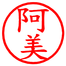 [朱肉の色]を選び、入力窓に“阿美”と入力して[生成]ボタンを押すと、印影が更新され、リンクから電子印鑑(デジタル印影)がダウンロードできます。 電子印鑑「阿美」の作り方文字表示が変なときや、文字バランスが悪いときは[字形切替]のチェックボックスでON/OFFを切り替え[生成]しなおしてください。 生成される画像は通常の印影「阿美.png」と、にじみを表現した少し太めの印影「阿美B.png」の背面透過PNG形式2種と、鮮明なPDF形式の印影「阿美.pdf」の計3種類です。 朱肉の微妙な色の違いを7色で表現しました。デフォルト(左端)は、JISが定めた朱肉の色のマンセル値(7.5R 5/14)をRGB値(217,66,54)に変換したものになっています。 「電子透かし」にチェックを入れて[生成]ボタンを押すと、タイムスタンプを電子透かしとして埋め込んだセキュアな電子印鑑が作れます。詳細は別ページの「タイムスタンプと電子透かし」でご覧ください。 阿美さんの日付印が作れます。「日付スタンプメーカー」は、社内向けの書類に利用されることの多い日付印(データ印)が無料で作れるWebアプリケーションです。中段に日付が入り、上段と下段は、ともに8文字まで文字が入ります。 ![]() 古代文字で落款印が作れます。「落款スタンプメーカー」で作品を引き立たせる落款印が作れます。