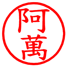 [朱肉の色]を選び、入力窓に“阿萬”と入力して[生成]ボタンを押すと、印影が更新され、リンクから電子印鑑(デジタル印影)がダウンロードできます。 電子印鑑「阿萬」の作り方文字表示が変なときや、文字バランスが悪いときは[字形切替]のチェックボックスでON/OFFを切り替え[生成]しなおしてください。 生成される画像は通常の印影「阿萬.png」と、にじみを表現した少し太めの印影「阿萬B.png」の背面透過PNG形式2種と、鮮明なPDF形式の印影「阿萬.pdf」の計3種類です。 朱肉の微妙な色の違いを7色で表現しました。デフォルト(左端)は、JISが定めた朱肉の色のマンセル値(7.5R 5/14)をRGB値(217,66,54)に変換したものになっています。 「電子透かし」にチェックを入れて[生成]ボタンを押すと、タイムスタンプを電子透かしとして埋め込んだセキュアな電子印鑑が作れます。詳細は別ページの「タイムスタンプと電子透かし」でご覧ください。 阿萬さんの日付印が作れます。「日付スタンプメーカー」は、社内向けの書類に利用されることの多い日付印(データ印)が無料で作れるWebアプリケーションです。中段に日付が入り、上段と下段は、ともに8文字まで文字が入ります。 ![]() 古代文字で落款印が作れます。「落款スタンプメーカー」で作品を引き立たせる落款印が作れます。