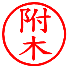 [朱肉の色]を選び、入力窓に“附木”と入力して[生成]ボタンを押すと、印影が更新され、リンクから電子印鑑(デジタル印影)がダウンロードできます。 電子印鑑「附木」の作り方文字表示が変なときや、文字バランスが悪いときは[字形切替]のチェックボックスでON/OFFを切り替え[生成]しなおしてください。 生成される画像は通常の印影「附木.png」と、にじみを表現した少し太めの印影「附木B.png」の背面透過PNG形式2種と、鮮明なPDF形式の印影「附木.pdf」の計3種類です。 朱肉の微妙な色の違いを7色で表現しました。デフォルト(左端)は、JISが定めた朱肉の色のマンセル値(7.5R 5/14)をRGB値(217,66,54)に変換したものになっています。 「電子透かし」にチェックを入れて[生成]ボタンを押すと、タイムスタンプを電子透かしとして埋め込んだセキュアな電子印鑑が作れます。詳細は別ページの「タイムスタンプと電子透かし」でご覧ください。 附木さんの日付印が作れます。「日付スタンプメーカー」は、社内向けの書類に利用されることの多い日付印(データ印)が無料で作れるWebアプリケーションです。中段に日付が入り、上段と下段は、ともに8文字まで文字が入ります。 ![]() 古代文字で落款印が作れます。「落款スタンプメーカー」で作品を引き立たせる落款印が作れます。