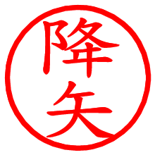 [朱肉の色]を選び、入力窓に“降矢”と入力して[生成]ボタンを押すと、印影が更新され、リンクから電子印鑑(デジタル印影)がダウンロードできます。 電子印鑑「降矢」の作り方文字表示が変なときや、文字バランスが悪いときは[字形切替]のチェックボックスでON/OFFを切り替え[生成]しなおしてください。 生成される画像は通常の印影「降矢.png」と、にじみを表現した少し太めの印影「降矢B.png」の背面透過PNG形式2種と、鮮明なPDF形式の印影「降矢.pdf」の計3種類です。 朱肉の微妙な色の違いを7色で表現しました。デフォルト(左端)は、JISが定めた朱肉の色のマンセル値(7.5R 5/14)をRGB値(217,66,54)に変換したものになっています。 「電子透かし」にチェックを入れて[生成]ボタンを押すと、タイムスタンプを透かしとして埋め込んだセキュアな電子印鑑が作れます。詳細は別ページの「電子透かしとタイムスタンプ」でご覧ください。 降矢さんの日付印が作れます。「日付スタンプメーカー」は、社内向けの書類に利用されることの多い日付印(データ印)が無料で作れるWebアプリケーションです。中段に日付が入り、上段と下段は、ともに8文字まで文字が入ります。 ![]() 古代文字で落款印が作れます。「落款スタンプメーカー」で作品を引き立たせる落款印が作れます。