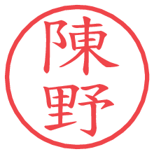 [朱肉の色]を選び、入力窓に“陳野”と入力して[生成]ボタンを押すと、印影が更新され、リンクから電子印鑑(デジタル印影)がダウンロードできます。 電子印鑑「陳野」の作り方文字表示が変なときや、文字バランスが悪いときは[字形切替]のチェックボックスでON/OFFを切り替え[生成]しなおしてください。 生成される画像は通常の印影「陳野.png」と、にじみを表現した少し太めの印影「陳野B.png」の背面透過PNG形式2種と、鮮明なPDF形式の印影「陳野.pdf」の計3種類です。 朱肉の微妙な色の違いを7色で表現しました。デフォルト(左端)は、JISが定めた朱肉の色のマンセル値(7.5R 5/14)をRGB値(217,66,54)に変換したものになっています。 「電子透かし」にチェックを入れて[生成]ボタンを押すと、タイムスタンプを透かしとして埋め込んだセキュアな電子印鑑が作れます。詳細は別ページの「電子透かしとタイムスタンプ」でご覧ください。 陳野さんの日付印が作れます。「日付スタンプメーカー」は、社内向けの書類に利用されることの多い日付印(データ印)が無料で作れるWebアプリケーションです。中段に日付が入り、上段と下段は、ともに8文字まで文字が入ります。 ![]() 古代文字で落款印が作れます。「落款スタンプメーカー」で作品を引き立たせる落款印が作れます。