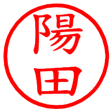 [朱肉の色]を選び、入力窓に“陽田”と入力して[生成]ボタンを押すと、印影が更新され、リンクから電子印鑑(デジタル印影)がダウンロードできます。 電子印鑑「陽田」の作り方文字表示が変なときや、文字バランスが悪いときは[字形切替]のチェックボックスでON/OFFを切り替え[生成]しなおしてください。 生成される画像は通常の印影「陽田.png」と、にじみを表現した少し太めの印影「陽田B.png」の背面透過PNG形式2種と、鮮明なPDF形式の印影「陽田.pdf」の計3種類です。 朱肉の微妙な色の違いを7色で表現しました。デフォルト(左端)は、JISが定めた朱肉の色のマンセル値(7.5R 5/14)をRGB値(217,66,54)に変換したものになっています。 「電子透かし」にチェックを入れて[生成]ボタンを押すと、タイムスタンプを電子透かしとして埋め込んだセキュアな電子印鑑が作れます。詳細は別ページの「タイムスタンプと電子透かし」でご覧ください。 陽田さんの日付印が作れます。「日付スタンプメーカー」は、社内向けの書類に利用されることの多い日付印(データ印)が無料で作れるWebアプリケーションです。中段に日付が入り、上段と下段は、ともに8文字まで文字が入ります。 ![]() 古代文字で落款印が作れます。「落款スタンプメーカー」で作品を引き立たせる落款印が作れます。
