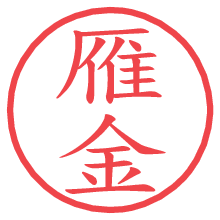 [朱肉の色]を選び、入力窓に“雁金”と入力して[生成]ボタンを押すと、印影が更新され、リンクから電子印鑑(デジタル印影)がダウンロードできます。 電子印鑑「雁金」の作り方文字表示が変なときや、文字バランスが悪いときは[字形切替]のチェックボックスでON/OFFを切り替え[生成]しなおしてください。 生成される画像は通常の印影「雁金.png」と、にじみを表現した少し太めの印影「雁金B.png」の背面透過PNG形式2種と、鮮明なPDF形式の印影「雁金.pdf」の計3種類です。 朱肉の微妙な色の違いを7色で表現しました。デフォルト(左端)は、JISが定めた朱肉の色のマンセル値(7.5R 5/14)をRGB値(217,66,54)に変換したものになっています。 「電子透かし」にチェックを入れて[生成]ボタンを押すと、タイムスタンプを電子透かしとして埋め込んだセキュアな電子印鑑が作れます。詳細は別ページの「タイムスタンプと電子透かし」でご覧ください。 雁金さんの日付印が作れます。「日付スタンプメーカー」は、社内向けの書類に利用されることの多い日付印(データ印)が無料で作れるWebアプリケーションです。中段に日付が入り、上段と下段は、ともに8文字まで文字が入ります。 ![]() 古代文字で落款印が作れます。「落款スタンプメーカー」で作品を引き立たせる落款印が作れます。