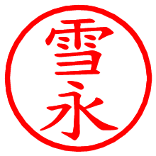 [朱肉の色]を選び、入力窓に“雪永”と入力して[生成]ボタンを押すと、印影が更新され、リンクから電子印鑑(デジタル印影)がダウンロードできます。 電子印鑑「雪永」の作り方文字表示が変なときや、文字バランスが悪いときは[字形切替]のチェックボックスでON/OFFを切り替え[生成]しなおしてください。 生成される画像は通常の印影「雪永.png」と、にじみを表現した少し太めの印影「雪永B.png」の背面透過PNG形式2種と、鮮明なPDF形式の印影「雪永.pdf」の計3種類です。 朱肉の微妙な色の違いを7色で表現しました。デフォルト(左端)は、JISが定めた朱肉の色のマンセル値(7.5R 5/14)をRGB値(217,66,54)に変換したものになっています。 「電子透かし」にチェックを入れて[生成]ボタンを押すと、タイムスタンプを電子透かしとして埋め込んだセキュアな電子印鑑が作れます。詳細は別ページの「タイムスタンプと電子透かし」でご覧ください。 雪永さんの日付印が作れます。「日付スタンプメーカー」は、社内向けの書類に利用されることの多い日付印(データ印)が無料で作れるWebアプリケーションです。中段に日付が入り、上段と下段は、ともに8文字まで文字が入ります。 ![]() 古代文字で落款印が作れます。「落款スタンプメーカー」で作品を引き立たせる落款印が作れます。