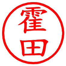 [朱肉の色]を選び、入力窓に“霍田”と入力して[生成]ボタンを押すと、印影が更新され、リンクから電子印鑑(デジタル印影)がダウンロードできます。 電子印鑑「霍田」の作り方文字表示が変なときや、文字バランスが悪いときは[字形切替]のチェックボックスでON/OFFを切り替え[生成]しなおしてください。 生成される画像は通常の印影「霍田.png」と、にじみを表現した少し太めの印影「霍田B.png」の背面透過PNG形式2種と、鮮明なPDF形式の印影「霍田.pdf」の計3種類です。 朱肉の微妙な色の違いを7色で表現しました。デフォルト(左端)は、JISが定めた朱肉の色のマンセル値(7.5R 5/14)をRGB値(217,66,54)に変換したものになっています。 「電子透かし」にチェックを入れて[生成]ボタンを押すと、タイムスタンプを電子透かしとして埋め込んだセキュアな電子印鑑が作れます。詳細は別ページの「タイムスタンプと電子透かし」でご覧ください。 霍田さんの日付印が作れます。「日付スタンプメーカー」は、社内向けの書類に利用されることの多い日付印(データ印)が無料で作れるWebアプリケーションです。中段に日付が入り、上段と下段は、ともに8文字まで文字が入ります。 ![]() 古代文字で落款印が作れます。「落款スタンプメーカー」で作品を引き立たせる落款印が作れます。