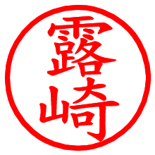 [朱肉の色]を選び、入力窓に“露崎”と入力して[生成]ボタンを押すと、印影が更新され、リンクから電子印鑑(デジタル印影)がダウンロードできます。 電子印鑑「露崎」の作り方文字表示が変なときや、文字バランスが悪いときは[字形切替]のチェックボックスでON/OFFを切り替え[生成]しなおしてください。 生成される画像は通常の印影「露崎.png」と、にじみを表現した少し太めの印影「露崎B.png」の背面透過PNG形式2種と、鮮明なPDF形式の印影「露崎.pdf」の計3種類です。 朱肉の微妙な色の違いを7色で表現しました。デフォルト(左端)は、JISが定めた朱肉の色のマンセル値(7.5R 5/14)をRGB値(217,66,54)に変換したものになっています。 「電子透かし」にチェックを入れて[生成]ボタンを押すと、タイムスタンプを透かしとして埋め込んだセキュアな電子印鑑が作れます。詳細は別ページの「電子透かしとタイムスタンプ」でご覧ください。 露崎さんの日付印が作れます。「日付スタンプメーカー」は、社内向けの書類に利用されることの多い日付印(データ印)が無料で作れるWebアプリケーションです。中段に日付が入り、上段と下段は、ともに8文字まで文字が入ります。 ![]() 古代文字で落款印が作れます。「落款スタンプメーカー」で作品を引き立たせる落款印が作れます。