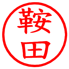 [朱肉の色]を選び、入力窓に“鞍田”と入力して[生成]ボタンを押すと、印影が更新され、リンクから電子印鑑(デジタル印影)がダウンロードできます。 電子印鑑「鞍田」の作り方文字表示が変なときや、文字バランスが悪いときは[字形切替]のチェックボックスでON/OFFを切り替え[生成]しなおしてください。 生成される画像は通常の印影「鞍田.png」と、にじみを表現した少し太めの印影「鞍田B.png」の背面透過PNG形式2種と、鮮明なPDF形式の印影「鞍田.pdf」の計3種類です。 朱肉の微妙な色の違いを7色で表現しました。デフォルト(左端)は、JISが定めた朱肉の色のマンセル値(7.5R 5/14)をRGB値(217,66,54)に変換したものになっています。 「電子透かし」にチェックを入れて[生成]ボタンを押すと、タイムスタンプを電子透かしとして埋め込んだセキュアな電子印鑑が作れます。詳細は別ページの「タイムスタンプと電子透かし」でご覧ください。 鞍田さんの日付印が作れます。「日付スタンプメーカー」は、社内向けの書類に利用されることの多い日付印(データ印)が無料で作れるWebアプリケーションです。中段に日付が入り、上段と下段は、ともに8文字まで文字が入ります。 ![]() 古代文字で落款印が作れます。「落款スタンプメーカー」で作品を引き立たせる落款印が作れます。
