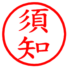 [朱肉の色]を選び、入力窓に“須知”と入力して[生成]ボタンを押すと、印影が更新され、リンクから電子印鑑(デジタル印影)がダウンロードできます。 電子印鑑「須知」の作り方文字表示が変なときや、文字バランスが悪いときは[字形切替]のチェックボックスでON/OFFを切り替え[生成]しなおしてください。 生成される画像は通常の印影「須知.png」と、にじみを表現した少し太めの印影「須知B.png」の背面透過PNG形式2種と、鮮明なPDF形式の印影「須知.pdf」の計3種類です。 朱肉の微妙な色の違いを7色で表現しました。デフォルト(左端)は、JISが定めた朱肉の色のマンセル値(7.5R 5/14)をRGB値(217,66,54)に変換したものになっています。 「電子透かし」にチェックを入れて[生成]ボタンを押すと、タイムスタンプを電子透かしとして埋め込んだセキュアな電子印鑑が作れます。詳細は別ページの「タイムスタンプと電子透かし」でご覧ください。 須知さんの日付印が作れます。「日付スタンプメーカー」は、社内向けの書類に利用されることの多い日付印(データ印)が無料で作れるWebアプリケーションです。中段に日付が入り、上段と下段は、ともに8文字まで文字が入ります。 ![]() 古代文字で落款印が作れます。「落款スタンプメーカー」で作品を引き立たせる落款印が作れます。
