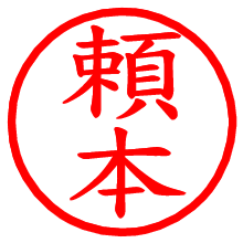 [朱肉の色]を選び、入力窓に“頼本”と入力して[生成]ボタンを押すと、印影が更新され、リンクから電子印鑑(デジタル印影)がダウンロードできます。 電子印鑑「頼本」の作り方文字表示が変なときや、文字バランスが悪いときは[字形切替]のチェックボックスでON/OFFを切り替え[生成]しなおしてください。 生成される画像は通常の印影「頼本.png」と、にじみを表現した少し太めの印影「頼本B.png」の背面透過PNG形式2種と、鮮明なPDF形式の印影「頼本.pdf」の計3種類です。 朱肉の微妙な色の違いを7色で表現しました。デフォルト(左端)は、JISが定めた朱肉の色のマンセル値(7.5R 5/14)をRGB値(217,66,54)に変換したものになっています。 「電子透かし」にチェックを入れて[生成]ボタンを押すと、タイムスタンプを電子透かしとして埋め込んだセキュアな電子印鑑が作れます。詳細は別ページの「タイムスタンプと電子透かし」でご覧ください。 頼本さんの日付印が作れます。「日付スタンプメーカー」は、社内向けの書類に利用されることの多い日付印(データ印)が無料で作れるWebアプリケーションです。中段に日付が入り、上段と下段は、ともに8文字まで文字が入ります。 ![]() 古代文字で落款印が作れます。「落款スタンプメーカー」で作品を引き立たせる落款印が作れます。