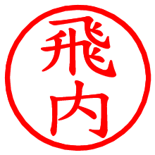 [朱肉の色]を選び、入力窓に“飛内”と入力して[生成]ボタンを押すと、印影が更新され、リンクから電子印鑑(デジタル印影)がダウンロードできます。 電子印鑑「飛内」の作り方文字表示が変なときや、文字バランスが悪いときは[字形切替]のチェックボックスでON/OFFを切り替え[生成]しなおしてください。 生成される画像は通常の印影「飛内.png」と、にじみを表現した少し太めの印影「飛内B.png」の背面透過PNG形式2種と、鮮明なPDF形式の印影「飛内.pdf」の計3種類です。 朱肉の微妙な色の違いを7色で表現しました。デフォルト(左端)は、JISが定めた朱肉の色のマンセル値(7.5R 5/14)をRGB値(217,66,54)に変換したものになっています。 「電子透かし」にチェックを入れて[生成]ボタンを押すと、タイムスタンプを電子透かしとして埋め込んだセキュアな電子印鑑が作れます。詳細は別ページの「タイムスタンプと電子透かし」でご覧ください。 飛内さんの日付印が作れます。「日付スタンプメーカー」は、社内向けの書類に利用されることの多い日付印(データ印)が無料で作れるWebアプリケーションです。中段に日付が入り、上段と下段は、ともに8文字まで文字が入ります。 ![]() 古代文字で落款印が作れます。「落款スタンプメーカー」で作品を引き立たせる落款印が作れます。