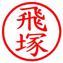 [朱肉の色]を選び、入力窓に“飛塚”と入力して[生成]ボタンを押すと、印影が更新され、リンクから電子印鑑(デジタル印影)がダウンロードできます。 電子印鑑「飛塚」の作り方文字表示が変なときや、文字バランスが悪いときは[字形切替]のチェックボックスでON/OFFを切り替え[生成]しなおしてください。 生成される画像は通常の印影「飛塚.png」と、にじみを表現した少し太めの印影「飛塚B.png」の背面透過PNG形式2種と、鮮明なPDF形式の印影「飛塚.pdf」の計3種類です。 朱肉の微妙な色の違いを7色で表現しました。デフォルト(左端)は、JISが定めた朱肉の色のマンセル値(7.5R 5/14)をRGB値(217,66,54)に変換したものになっています。 「電子透かし」にチェックを入れて[生成]ボタンを押すと、タイムスタンプを電子透かしとして埋め込んだセキュアな電子印鑑が作れます。詳細は別ページの「タイムスタンプと電子透かし」でご覧ください。 飛塚さんの日付印が作れます。「日付スタンプメーカー」は、社内向けの書類に利用されることの多い日付印(データ印)が無料で作れるWebアプリケーションです。中段に日付が入り、上段と下段は、ともに8文字まで文字が入ります。 ![]() 古代文字で落款印が作れます。「落款スタンプメーカー」で作品を引き立たせる落款印が作れます。