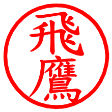 [朱肉の色]を選び、入力窓に“飛鷹”と入力して[生成]ボタンを押すと、印影が更新され、リンクから電子印鑑(デジタル印影)がダウンロードできます。 電子印鑑「飛鷹」の作り方文字表示が変なときや、文字バランスが悪いときは[字形切替]のチェックボックスでON/OFFを切り替え[生成]しなおしてください。 生成される画像は通常の印影「飛鷹.png」と、にじみを表現した少し太めの印影「飛鷹B.png」の背面透過PNG形式2種と、鮮明なPDF形式の印影「飛鷹.pdf」の計3種類です。 朱肉の微妙な色の違いを7色で表現しました。デフォルト(左端)は、JISが定めた朱肉の色のマンセル値(7.5R 5/14)をRGB値(217,66,54)に変換したものになっています。 「電子透かし」にチェックを入れて[生成]ボタンを押すと、タイムスタンプを電子透かしとして埋め込んだセキュアな電子印鑑が作れます。詳細は別ページの「タイムスタンプと電子透かし」でご覧ください。 飛鷹さんの日付印が作れます。「日付スタンプメーカー」は、社内向けの書類に利用されることの多い日付印(データ印)が無料で作れるWebアプリケーションです。中段に日付が入り、上段と下段は、ともに8文字まで文字が入ります。 ![]() 古代文字で落款印が作れます。「落款スタンプメーカー」で作品を引き立たせる落款印が作れます。