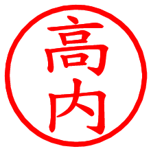 [朱肉の色]を選び、入力窓に“高内”と入力して[生成]ボタンを押すと、印影が更新され、リンクから電子印鑑(デジタル印影)がダウンロードできます。 電子印鑑「高内」の作り方文字表示が変なときや、文字バランスが悪いときは[字形切替]のチェックボックスでON/OFFを切り替え[生成]しなおしてください。 生成される画像は通常の印影「高内.png」と、にじみを表現した少し太めの印影「高内B.png」の背面透過PNG形式2種と、鮮明なPDF形式の印影「高内.pdf」の計3種類です。 朱肉の微妙な色の違いを7色で表現しました。デフォルト(左端)は、JISが定めた朱肉の色のマンセル値(7.5R 5/14)をRGB値(217,66,54)に変換したものになっています。 「電子透かし」にチェックを入れて[生成]ボタンを押すと、タイムスタンプを電子透かしとして埋め込んだセキュアな電子印鑑が作れます。詳細は別ページの「タイムスタンプと電子透かし」でご覧ください。 高内さんの日付印が作れます。「日付スタンプメーカー」は、社内向けの書類に利用されることの多い日付印(データ印)が無料で作れるWebアプリケーションです。中段に日付が入り、上段と下段は、ともに8文字まで文字が入ります。 ![]() 古代文字で落款印が作れます。「落款スタンプメーカー」で作品を引き立たせる落款印が作れます。