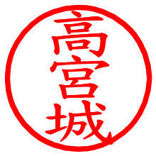 [朱肉の色]を選び、入力窓に“高宮城”と入力して[生成]ボタンを押すと、印影が更新され、リンクから電子印鑑(デジタル印影)がダウンロードできます。 電子印鑑「高宮城」の作り方文字表示が変なときや、文字バランスが悪いときは[字形切替]のチェックボックスでON/OFFを切り替え[生成]しなおしてください。 生成される画像は通常の印影「高宮城.png」と、にじみを表現した少し太めの印影「高宮城B.png」の背面透過PNG形式2種と、鮮明なPDF形式の印影「高宮城.pdf」の計3種類です。 朱肉の微妙な色の違いを7色で表現しました。デフォルト(左端)は、JISが定めた朱肉の色のマンセル値(7.5R 5/14)をRGB値(217,66,54)に変換したものになっています。 「電子透かし」にチェックを入れて[生成]ボタンを押すと、タイムスタンプを電子透かしとして埋め込んだセキュアな電子印鑑が作れます。詳細は別ページの「タイムスタンプと電子透かし」でご覧ください。 高宮城さんの日付印が作れます。「日付スタンプメーカー」は、社内向けの書類に利用されることの多い日付印(データ印)が無料で作れるWebアプリケーションです。中段に日付が入り、上段と下段は、ともに8文字まで文字が入ります。 ![]() 古代文字で落款印が作れます。「落款スタンプメーカー」で作品を引き立たせる落款印が作れます。