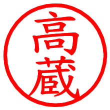 [朱肉の色]を選び、入力窓に“高蔵”と入力して[生成]ボタンを押すと、印影が更新され、リンクから電子印鑑(デジタル印影)がダウンロードできます。 電子印鑑「高蔵」の作り方文字表示が変なときや、文字バランスが悪いときは[字形切替]のチェックボックスでON/OFFを切り替え[生成]しなおしてください。 生成される画像は通常の印影「高蔵.png」と、にじみを表現した少し太めの印影「高蔵B.png」の背面透過PNG形式2種と、鮮明なPDF形式の印影「高蔵.pdf」の計3種類です。 朱肉の微妙な色の違いを7色で表現しました。デフォルト(左端)は、JISが定めた朱肉の色のマンセル値(7.5R 5/14)をRGB値(217,66,54)に変換したものになっています。 「電子透かし」にチェックを入れて[生成]ボタンを押すと、タイムスタンプを電子透かしとして埋め込んだセキュアな電子印鑑が作れます。詳細は別ページの「タイムスタンプと電子透かし」でご覧ください。 高蔵さんの日付印が作れます。「日付スタンプメーカー」は、社内向けの書類に利用されることの多い日付印(データ印)が無料で作れるWebアプリケーションです。中段に日付が入り、上段と下段は、ともに8文字まで文字が入ります。 ![]() 古代文字で落款印が作れます。「落款スタンプメーカー」で作品を引き立たせる落款印が作れます。