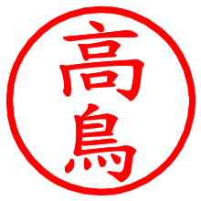 [朱肉の色]を選び、入力窓に“高鳥”と入力して[生成]ボタンを押すと、印影が更新され、リンクから電子印鑑(デジタル印影)がダウンロードできます。 電子印鑑「高鳥」の作り方文字表示が変なときや、文字バランスが悪いときは[字形切替]のチェックボックスでON/OFFを切り替え[生成]しなおしてください。 生成される画像は通常の印影「高鳥.png」と、にじみを表現した少し太めの印影「高鳥B.png」の背面透過PNG形式2種と、鮮明なPDF形式の印影「高鳥.pdf」の計3種類です。 朱肉の微妙な色の違いを7色で表現しました。デフォルト(左端)は、JISが定めた朱肉の色のマンセル値(7.5R 5/14)をRGB値(217,66,54)に変換したものになっています。 「電子透かし」にチェックを入れて[生成]ボタンを押すと、タイムスタンプを電子透かしとして埋め込んだセキュアな電子印鑑が作れます。詳細は別ページの「タイムスタンプと電子透かし」でご覧ください。 高鳥さんの日付印が作れます。「日付スタンプメーカー」は、社内向けの書類に利用されることの多い日付印(データ印)が無料で作れるWebアプリケーションです。中段に日付が入り、上段と下段は、ともに8文字まで文字が入ります。 ![]() 古代文字で落款印が作れます。「落款スタンプメーカー」で作品を引き立たせる落款印が作れます。