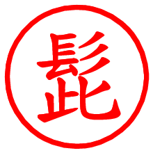 [朱肉の色]を選び、入力窓に“髭”と入力して[生成]ボタンを押すと、印影が更新され、リンクから電子印鑑(デジタル印影)がダウンロードできます。 電子印鑑「髭」の作り方文字表示が変なときや、文字バランスが悪いときは[字形切替]のチェックボックスでON/OFFを切り替え[生成]しなおしてください。 生成される画像は通常の印影「髭.png」と、にじみを表現した少し太めの印影「髭B.png」の背面透過PNG形式2種と、鮮明なPDF形式の印影「髭.pdf」の計3種類です。 朱肉の微妙な色の違いを7色で表現しました。デフォルト(左端)は、JISが定めた朱肉の色のマンセル値(7.5R 5/14)をRGB値(217,66,54)に変換したものになっています。 「電子透かし」にチェックを入れて[生成]ボタンを押すと、タイムスタンプを電子透かしとして埋め込んだセキュアな電子印鑑が作れます。詳細は別ページの「タイムスタンプと電子透かし」でご覧ください。 髭さんの日付印が作れます。「日付スタンプメーカー」は、社内向けの書類に利用されることの多い日付印(データ印)が無料で作れるWebアプリケーションです。中段に日付が入り、上段と下段は、ともに8文字まで文字が入ります。 ![]() 古代文字で落款印が作れます。「落款スタンプメーカー」で作品を引き立たせる落款印が作れます。