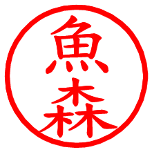 [朱肉の色]を選び、入力窓に“魚森”と入力して[生成]ボタンを押すと、印影が更新され、リンクから電子印鑑(デジタル印影)がダウンロードできます。 電子印鑑「魚森」の作り方文字表示が変なときや、文字バランスが悪いときは[字形切替]のチェックボックスでON/OFFを切り替え[生成]しなおしてください。 生成される画像は通常の印影「魚森.png」と、にじみを表現した少し太めの印影「魚森B.png」の背面透過PNG形式2種と、鮮明なPDF形式の印影「魚森.pdf」の計3種類です。 朱肉の微妙な色の違いを7色で表現しました。デフォルト(左端)は、JISが定めた朱肉の色のマンセル値(7.5R 5/14)をRGB値(217,66,54)に変換したものになっています。 「電子透かし」にチェックを入れて[生成]ボタンを押すと、タイムスタンプを電子透かしとして埋め込んだセキュアな電子印鑑が作れます。詳細は別ページの「タイムスタンプと電子透かし」でご覧ください。 魚森さんの日付印が作れます。「日付スタンプメーカー」は、社内向けの書類に利用されることの多い日付印(データ印)が無料で作れるWebアプリケーションです。中段に日付が入り、上段と下段は、ともに8文字まで文字が入ります。 ![]() 古代文字で落款印が作れます。「落款スタンプメーカー」で作品を引き立たせる落款印が作れます。