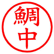 [朱肉の色]を選び、入力窓に“鯛中”と入力して[生成]ボタンを押すと、印影が更新され、リンクから電子印鑑(デジタル印影)がダウンロードできます。 電子印鑑「鯛中」の作り方文字表示が変なときや、文字バランスが悪いときは[字形切替]のチェックボックスでON/OFFを切り替え[生成]しなおしてください。 生成される画像は通常の印影「鯛中.png」と、にじみを表現した少し太めの印影「鯛中B.png」の背面透過PNG形式2種と、鮮明なPDF形式の印影「鯛中.pdf」の計3種類です。 朱肉の微妙な色の違いを7色で表現しました。デフォルト(左端)は、JISが定めた朱肉の色のマンセル値(7.5R 5/14)をRGB値(217,66,54)に変換したものになっています。 「電子透かし」にチェックを入れて[生成]ボタンを押すと、タイムスタンプを電子透かしとして埋め込んだセキュアな電子印鑑が作れます。詳細は別ページの「タイムスタンプと電子透かし」でご覧ください。 鯛中さんの日付印が作れます。「日付スタンプメーカー」は、社内向けの書類に利用されることの多い日付印(データ印)が無料で作れるWebアプリケーションです。中段に日付が入り、上段と下段は、ともに8文字まで文字が入ります。 ![]() 古代文字で落款印が作れます。「落款スタンプメーカー」で作品を引き立たせる落款印が作れます。