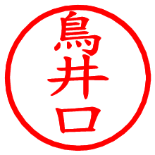 [朱肉の色]を選び、入力窓に“鳥井口”と入力して[生成]ボタンを押すと、印影が更新され、リンクから電子印鑑(デジタル印影)がダウンロードできます。 電子印鑑「鳥井口」の作り方文字表示が変なときや、文字バランスが悪いときは[字形切替]のチェックボックスでON/OFFを切り替え[生成]しなおしてください。 生成される画像は通常の印影「鳥井口.png」と、にじみを表現した少し太めの印影「鳥井口B.png」の背面透過PNG形式2種と、鮮明なPDF形式の印影「鳥井口.pdf」の計3種類です。 朱肉の微妙な色の違いを7色で表現しました。デフォルト(左端)は、JISが定めた朱肉の色のマンセル値(7.5R 5/14)をRGB値(217,66,54)に変換したものになっています。 「電子透かし」にチェックを入れて[生成]ボタンを押すと、タイムスタンプを電子透かしとして埋め込んだセキュアな電子印鑑が作れます。詳細は別ページの「タイムスタンプと電子透かし」でご覧ください。 鳥井口さんの日付印が作れます。「日付スタンプメーカー」は、社内向けの書類に利用されることの多い日付印(データ印)が無料で作れるWebアプリケーションです。中段に日付が入り、上段と下段は、ともに8文字まで文字が入ります。 ![]() 古代文字で落款印が作れます。「落款スタンプメーカー」で作品を引き立たせる落款印が作れます。