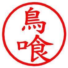 [朱肉の色]を選び、入力窓に“鳥喰”と入力して[生成]ボタンを押すと、印影が更新され、リンクから電子印鑑(デジタル印影)がダウンロードできます。 電子印鑑「鳥喰」の作り方文字表示が変なときや、文字バランスが悪いときは[字形切替]のチェックボックスでON/OFFを切り替え[生成]しなおしてください。 生成される画像は通常の印影「鳥喰.png」と、にじみを表現した少し太めの印影「鳥喰B.png」の背面透過PNG形式2種と、鮮明なPDF形式の印影「鳥喰.pdf」の計3種類です。 朱肉の微妙な色の違いを7色で表現しました。デフォルト(左端)は、JISが定めた朱肉の色のマンセル値(7.5R 5/14)をRGB値(217,66,54)に変換したものになっています。 「電子透かし」にチェックを入れて[生成]ボタンを押すと、タイムスタンプを電子透かしとして埋め込んだセキュアな電子印鑑が作れます。詳細は別ページの「タイムスタンプと電子透かし」でご覧ください。 鳥喰さんの日付印が作れます。「日付スタンプメーカー」は、社内向けの書類に利用されることの多い日付印(データ印)が無料で作れるWebアプリケーションです。中段に日付が入り、上段と下段は、ともに8文字まで文字が入ります。 ![]() 古代文字で落款印が作れます。「落款スタンプメーカー」で作品を引き立たせる落款印が作れます。