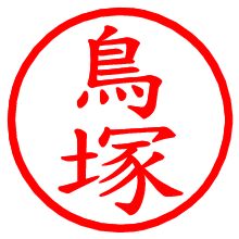 [朱肉の色]を選び、入力窓に“鳥塚”と入力して[生成]ボタンを押すと、印影が更新され、リンクから電子印鑑(デジタル印影)がダウンロードできます。 電子印鑑「鳥塚」の作り方文字表示が変なときや、文字バランスが悪いときは[字形切替]のチェックボックスでON/OFFを切り替え[生成]しなおしてください。 生成される画像は通常の印影「鳥塚.png」と、にじみを表現した少し太めの印影「鳥塚B.png」の背面透過PNG形式2種と、鮮明なPDF形式の印影「鳥塚.pdf」の計3種類です。 朱肉の微妙な色の違いを7色で表現しました。デフォルト(左端)は、JISが定めた朱肉の色のマンセル値(7.5R 5/14)をRGB値(217,66,54)に変換したものになっています。 「電子透かし」にチェックを入れて[生成]ボタンを押すと、タイムスタンプを電子透かしとして埋め込んだセキュアな電子印鑑が作れます。詳細は別ページの「タイムスタンプと電子透かし」でご覧ください。 鳥塚さんの日付印が作れます。「日付スタンプメーカー」は、社内向けの書類に利用されることの多い日付印(データ印)が無料で作れるWebアプリケーションです。中段に日付が入り、上段と下段は、ともに8文字まで文字が入ります。 ![]() 古代文字で落款印が作れます。「落款スタンプメーカー」で作品を引き立たせる落款印が作れます。