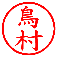 [朱肉の色]を選び、入力窓に“鳥村”と入力して[生成]ボタンを押すと、印影が更新され、リンクから電子印鑑(デジタル印影)がダウンロードできます。 電子印鑑「鳥村」の作り方文字表示が変なときや、文字バランスが悪いときは[字形切替]のチェックボックスでON/OFFを切り替え[生成]しなおしてください。 生成される画像は通常の印影「鳥村.png」と、にじみを表現した少し太めの印影「鳥村B.png」の背面透過PNG形式2種と、鮮明なPDF形式の印影「鳥村.pdf」の計3種類です。 朱肉の微妙な色の違いを7色で表現しました。デフォルト(左端)は、JISが定めた朱肉の色のマンセル値(7.5R 5/14)をRGB値(217,66,54)に変換したものになっています。 「電子透かし」にチェックを入れて[生成]ボタンを押すと、タイムスタンプを電子透かしとして埋め込んだセキュアな電子印鑑が作れます。詳細は別ページの「タイムスタンプと電子透かし」でご覧ください。 鳥村さんの日付印が作れます。「日付スタンプメーカー」は、社内向けの書類に利用されることの多い日付印(データ印)が無料で作れるWebアプリケーションです。中段に日付が入り、上段と下段は、ともに8文字まで文字が入ります。 ![]() 古代文字で落款印が作れます。「落款スタンプメーカー」で作品を引き立たせる落款印が作れます。