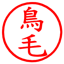 [朱肉の色]を選び、入力窓に“鳥毛”と入力して[生成]ボタンを押すと、印影が更新され、リンクから電子印鑑(デジタル印影)がダウンロードできます。 電子印鑑「鳥毛」の作り方文字表示が変なときや、文字バランスが悪いときは[字形切替]のチェックボックスでON/OFFを切り替え[生成]しなおしてください。 生成される画像は通常の印影「鳥毛.png」と、にじみを表現した少し太めの印影「鳥毛B.png」の背面透過PNG形式2種と、鮮明なPDF形式の印影「鳥毛.pdf」の計3種類です。 朱肉の微妙な色の違いを7色で表現しました。デフォルト(左端)は、JISが定めた朱肉の色のマンセル値(7.5R 5/14)をRGB値(217,66,54)に変換したものになっています。 「電子透かし」にチェックを入れて[生成]ボタンを押すと、タイムスタンプを電子透かしとして埋め込んだセキュアな電子印鑑が作れます。詳細は別ページの「タイムスタンプと電子透かし」でご覧ください。 鳥毛さんの日付印が作れます。「日付スタンプメーカー」は、社内向けの書類に利用されることの多い日付印(データ印)が無料で作れるWebアプリケーションです。中段に日付が入り、上段と下段は、ともに8文字まで文字が入ります。 ![]() 古代文字で落款印が作れます。「落款スタンプメーカー」で作品を引き立たせる落款印が作れます。