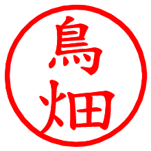 [朱肉の色]を選び、入力窓に“鳥畑”と入力して[生成]ボタンを押すと、印影が更新され、リンクから電子印鑑(デジタル印影)がダウンロードできます。 電子印鑑「鳥畑」の作り方文字表示が変なときや、文字バランスが悪いときは[字形切替]のチェックボックスでON/OFFを切り替え[生成]しなおしてください。 生成される画像は通常の印影「鳥畑.png」と、にじみを表現した少し太めの印影「鳥畑B.png」の背面透過PNG形式2種と、鮮明なPDF形式の印影「鳥畑.pdf」の計3種類です。 朱肉の微妙な色の違いを7色で表現しました。デフォルト(左端)は、JISが定めた朱肉の色のマンセル値(7.5R 5/14)をRGB値(217,66,54)に変換したものになっています。 「電子透かし」にチェックを入れて[生成]ボタンを押すと、タイムスタンプを電子透かしとして埋め込んだセキュアな電子印鑑が作れます。詳細は別ページの「タイムスタンプと電子透かし」でご覧ください。 鳥畑さんの日付印が作れます。「日付スタンプメーカー」は、社内向けの書類に利用されることの多い日付印(データ印)が無料で作れるWebアプリケーションです。中段に日付が入り、上段と下段は、ともに8文字まで文字が入ります。 ![]() 古代文字で落款印が作れます。「落款スタンプメーカー」で作品を引き立たせる落款印が作れます。