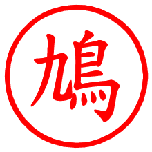 [朱肉の色]を選び、入力窓に“鳩”と入力して[生成]ボタンを押すと、印影が更新され、リンクから電子印鑑(デジタル印影)がダウンロードできます。 電子印鑑「鳩」の作り方文字表示が変なときや、文字バランスが悪いときは[字形切替]のチェックボックスでON/OFFを切り替え[生成]しなおしてください。 生成される画像は通常の印影「鳩.png」と、にじみを表現した少し太めの印影「鳩B.png」の背面透過PNG形式2種と、鮮明なPDF形式の印影「鳩.pdf」の計3種類です。 朱肉の微妙な色の違いを7色で表現しました。デフォルト(左端)は、JISが定めた朱肉の色のマンセル値(7.5R 5/14)をRGB値(217,66,54)に変換したものになっています。 「電子透かし」にチェックを入れて[生成]ボタンを押すと、タイムスタンプを電子透かしとして埋め込んだセキュアな電子印鑑が作れます。詳細は別ページの「タイムスタンプと電子透かし」でご覧ください。 鳩さんの日付印が作れます。「日付スタンプメーカー」は、社内向けの書類に利用されることの多い日付印(データ印)が無料で作れるWebアプリケーションです。中段に日付が入り、上段と下段は、ともに8文字まで文字が入ります。 ![]() 古代文字で落款印が作れます。「落款スタンプメーカー」で作品を引き立たせる落款印が作れます。