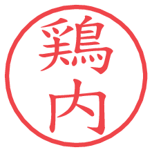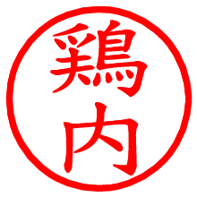 [朱肉の色]を選び、入力窓に“鶏内”と入力して[生成]ボタンを押すと、印影が更新され、リンクから電子印鑑(デジタル印影)がダウンロードできます。 電子印鑑「鶏内」の作り方文字表示が変なときや、文字バランスが悪いときは[字形切替]のチェックボックスでON/OFFを切り替え[生成]しなおしてください。 生成される画像は通常の印影「鶏内.png」と、にじみを表現した少し太めの印影「鶏内B.png」の背面透過PNG形式2種と、鮮明なPDF形式の印影「鶏内.pdf」の計3種類です。 朱肉の微妙な色の違いを7色で表現しました。デフォルト(左端)は、JISが定めた朱肉の色のマンセル値(7.5R 5/14)をRGB値(217,66,54)に変換したものになっています。 「電子透かし」にチェックを入れて[生成]ボタンを押すと、タイムスタンプを電子透かしとして埋め込んだセキュアな電子印鑑が作れます。詳細は別ページの「タイムスタンプと電子透かし」でご覧ください。 鶏内さんの日付印が作れます。「日付スタンプメーカー」は、社内向けの書類に利用されることの多い日付印(データ印)が無料で作れるWebアプリケーションです。中段に日付が入り、上段と下段は、ともに8文字まで文字が入ります。 ![]() 古代文字で落款印が作れます。「落款スタンプメーカー」で作品を引き立たせる落款印が作れます。