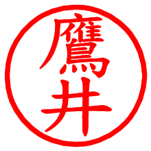 [朱肉の色]を選び、入力窓に“鷹井”と入力して[生成]ボタンを押すと、印影が更新され、リンクから電子印鑑(デジタル印影)がダウンロードできます。 電子印鑑「鷹井」の作り方文字表示が変なときや、文字バランスが悪いときは[字形切替]のチェックボックスでON/OFFを切り替え[生成]しなおしてください。 生成される画像は通常の印影「鷹井.png」と、にじみを表現した少し太めの印影「鷹井B.png」の背面透過PNG形式2種と、鮮明なPDF形式の印影「鷹井.pdf」の計3種類です。 朱肉の微妙な色の違いを7色で表現しました。デフォルト(左端)は、JISが定めた朱肉の色のマンセル値(7.5R 5/14)をRGB値(217,66,54)に変換したものになっています。 「電子透かし」にチェックを入れて[生成]ボタンを押すと、タイムスタンプを透かしとして埋め込んだセキュアな電子印鑑が作れます。詳細は別ページの「電子透かしとタイムスタンプ」でご覧ください。 鷹井さんの日付印が作れます。「日付スタンプメーカー」は、社内向けの書類に利用されることの多い日付印(データ印)が無料で作れるWebアプリケーションです。中段に日付が入り、上段と下段は、ともに8文字まで文字が入ります。 ![]() 古代文字で落款印が作れます。「落款スタンプメーカー」で作品を引き立たせる落款印が作れます。