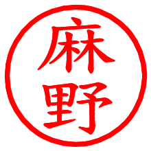 [朱肉の色]を選び、入力窓に“麻野”と入力して[生成]ボタンを押すと、印影が更新され、リンクから電子印鑑(デジタル印影)がダウンロードできます。 電子印鑑「麻野」の作り方文字表示が変なときや、文字バランスが悪いときは[字形切替]のチェックボックスでON/OFFを切り替え[生成]しなおしてください。 生成される画像は通常の印影「麻野.png」と、にじみを表現した少し太めの印影「麻野B.png」の背面透過PNG形式2種と、鮮明なPDF形式の印影「麻野.pdf」の計3種類です。 朱肉の微妙な色の違いを7色で表現しました。デフォルト(左端)は、JISが定めた朱肉の色のマンセル値(7.5R 5/14)をRGB値(217,66,54)に変換したものになっています。 「電子透かし」にチェックを入れて[生成]ボタンを押すと、タイムスタンプを電子透かしとして埋め込んだセキュアな電子印鑑が作れます。詳細は別ページの「タイムスタンプと電子透かし」でご覧ください。 麻野さんの日付印が作れます。「日付スタンプメーカー」は、社内向けの書類に利用されることの多い日付印(データ印)が無料で作れるWebアプリケーションです。中段に日付が入り、上段と下段は、ともに8文字まで文字が入ります。 ![]() 古代文字で落款印が作れます。「落款スタンプメーカー」で作品を引き立たせる落款印が作れます。