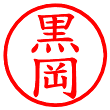 [朱肉の色]を選び、入力窓に“黒岡”と入力して[生成]ボタンを押すと、印影が更新され、リンクから電子印鑑(デジタル印影)がダウンロードできます。 電子印鑑「黒岡」の作り方文字表示が変なときや、文字バランスが悪いときは[字形切替]のチェックボックスでON/OFFを切り替え[生成]しなおしてください。 生成される画像は通常の印影「黒岡.png」と、にじみを表現した少し太めの印影「黒岡B.png」の背面透過PNG形式2種と、鮮明なPDF形式の印影「黒岡.pdf」の計3種類です。 朱肉の微妙な色の違いを7色で表現しました。デフォルト(左端)は、JISが定めた朱肉の色のマンセル値(7.5R 5/14)をRGB値(217,66,54)に変換したものになっています。 「電子透かし」にチェックを入れて[生成]ボタンを押すと、タイムスタンプを電子透かしとして埋め込んだセキュアな電子印鑑が作れます。詳細は別ページの「タイムスタンプと電子透かし」でご覧ください。 黒岡さんの日付印が作れます。「日付スタンプメーカー」は、社内向けの書類に利用されることの多い日付印(データ印)が無料で作れるWebアプリケーションです。中段に日付が入り、上段と下段は、ともに8文字まで文字が入ります。 ![]() 古代文字で落款印が作れます。「落款スタンプメーカー」で作品を引き立たせる落款印が作れます。