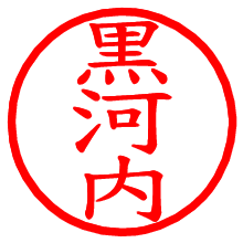 [朱肉の色]を選び、入力窓に“黒河内”と入力して[生成]ボタンを押すと、印影が更新され、リンクから電子印鑑(デジタル印影)がダウンロードできます。 電子印鑑「黒河内」の作り方文字表示が変なときや、文字バランスが悪いときは[字形切替]のチェックボックスでON/OFFを切り替え[生成]しなおしてください。 生成される画像は通常の印影「黒河内.png」と、にじみを表現した少し太めの印影「黒河内B.png」の背面透過PNG形式2種と、鮮明なPDF形式の印影「黒河内.pdf」の計3種類です。 朱肉の微妙な色の違いを7色で表現しました。デフォルト(左端)は、JISが定めた朱肉の色のマンセル値(7.5R 5/14)をRGB値(217,66,54)に変換したものになっています。 「電子透かし」にチェックを入れて[生成]ボタンを押すと、タイムスタンプを電子透かしとして埋め込んだセキュアな電子印鑑が作れます。詳細は別ページの「タイムスタンプと電子透かし」でご覧ください。 黒河内さんの日付印が作れます。「日付スタンプメーカー」は、社内向けの書類に利用されることの多い日付印(データ印)が無料で作れるWebアプリケーションです。中段に日付が入り、上段と下段は、ともに8文字まで文字が入ります。 ![]() 古代文字で落款印が作れます。「落款スタンプメーカー」で作品を引き立たせる落款印が作れます。