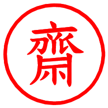 [朱肉の色]を選び、入力窓に“齋”と入力して[生成]ボタンを押すと、印影が更新され、リンクから電子印鑑(デジタル印影)がダウンロードできます。 電子印鑑「齋」の作り方文字表示が変なときや、文字バランスが悪いときは[字形切替]のチェックボックスでON/OFFを切り替え[生成]しなおしてください。 生成される画像は通常の印影「齋.png」と、にじみを表現した少し太めの印影「齋B.png」の背面透過PNG形式2種と、鮮明なPDF形式の印影「齋.pdf」の計3種類です。 朱肉の微妙な色の違いを7色で表現しました。デフォルト(左端)は、JISが定めた朱肉の色のマンセル値(7.5R 5/14)をRGB値(217,66,54)に変換したものになっています。 「電子透かし」にチェックを入れて[生成]ボタンを押すと、タイムスタンプを電子透かしとして埋め込んだセキュアな電子印鑑が作れます。詳細は別ページの「タイムスタンプと電子透かし」でご覧ください。 齋さんの日付印が作れます。「日付スタンプメーカー」は、社内向けの書類に利用されることの多い日付印(データ印)が無料で作れるWebアプリケーションです。中段に日付が入り、上段と下段は、ともに8文字まで文字が入ります。 ![]() 古代文字で落款印が作れます。「落款スタンプメーカー」で作品を引き立たせる落款印が作れます。