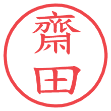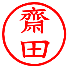 [朱肉の色]を選び、入力窓に“齋田”と入力して[生成]ボタンを押すと、印影が更新され、リンクから電子印鑑(デジタル印影)がダウンロードできます。 電子印鑑「齋田」の作り方文字表示が変なときや、文字バランスが悪いときは[字形切替]のチェックボックスでON/OFFを切り替え[生成]しなおしてください。 生成される画像は通常の印影「齋田.png」と、にじみを表現した少し太めの印影「齋田B.png」の背面透過PNG形式2種と、鮮明なPDF形式の印影「齋田.pdf」の計3種類です。 朱肉の微妙な色の違いを7色で表現しました。デフォルト(左端)は、JISが定めた朱肉の色のマンセル値(7.5R 5/14)をRGB値(217,66,54)に変換したものになっています。 「電子透かし」にチェックを入れて[生成]ボタンを押すと、タイムスタンプを電子透かしとして埋め込んだセキュアな電子印鑑が作れます。詳細は別ページの「タイムスタンプと電子透かし」でご覧ください。 齋田さんの日付印が作れます。「日付スタンプメーカー」は、社内向けの書類に利用されることの多い日付印(データ印)が無料で作れるWebアプリケーションです。中段に日付が入り、上段と下段は、ともに8文字まで文字が入ります。 ![]() 古代文字で落款印が作れます。「落款スタンプメーカー」で作品を引き立たせる落款印が作れます。